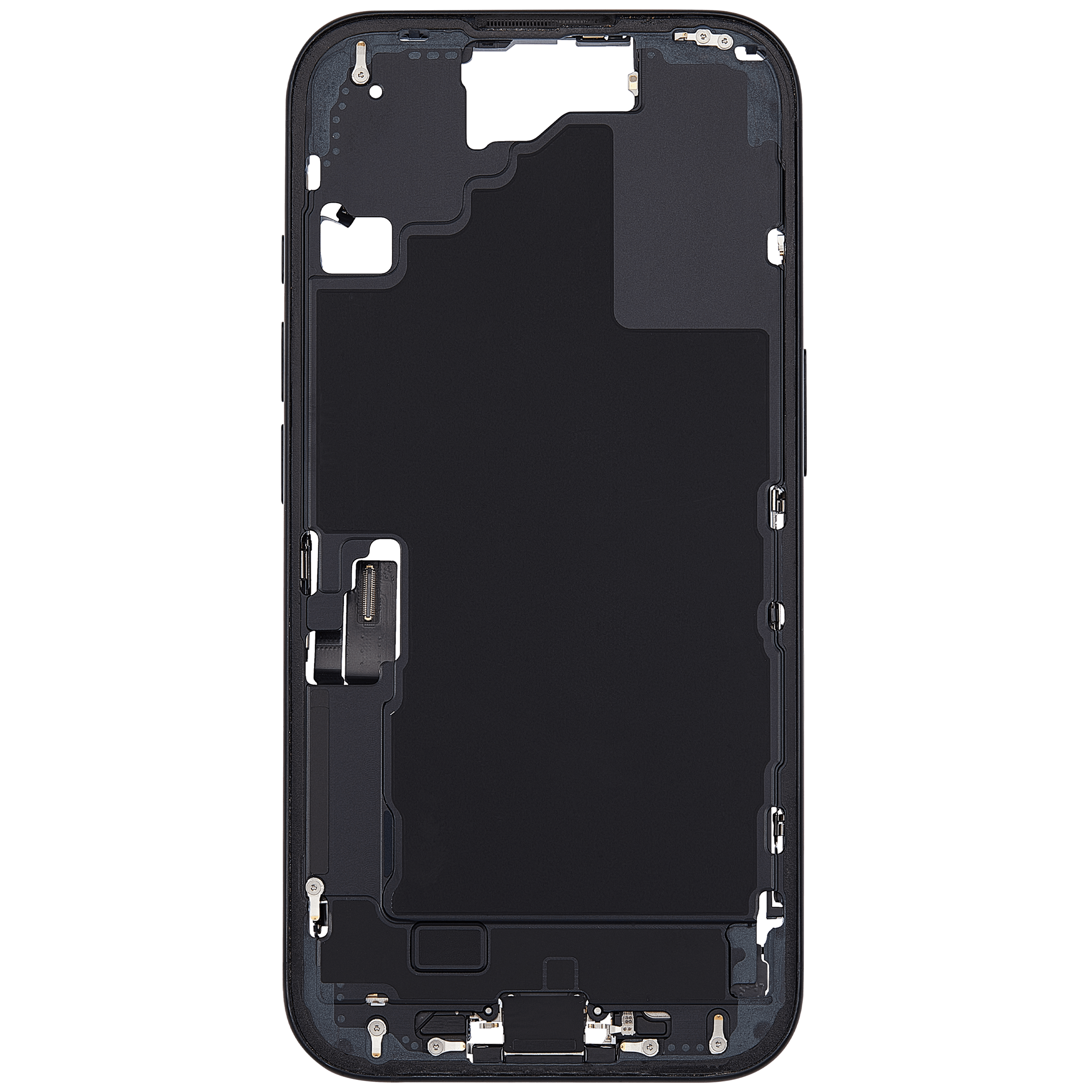 Mid-Frame Housing W/ Charging Port Flex & Small Parts For iPhone 16 (US Version) (Used OEM Pull: Grade B) (Black)