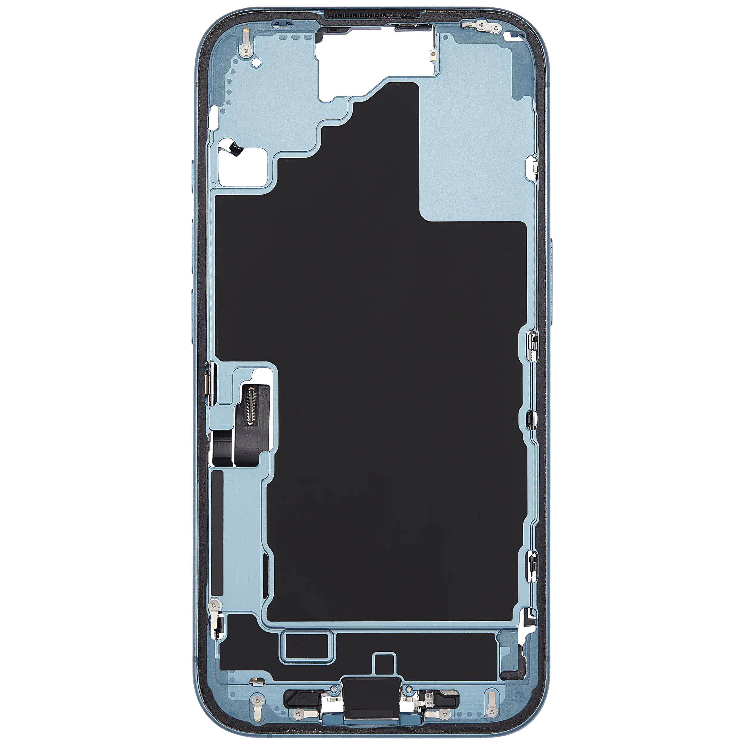 Mid-Frame Housing W/ Charging Port Flex & Small Parts For iPhone 16 (US Version) (Used OEM Pull: Grade B) (Teal)