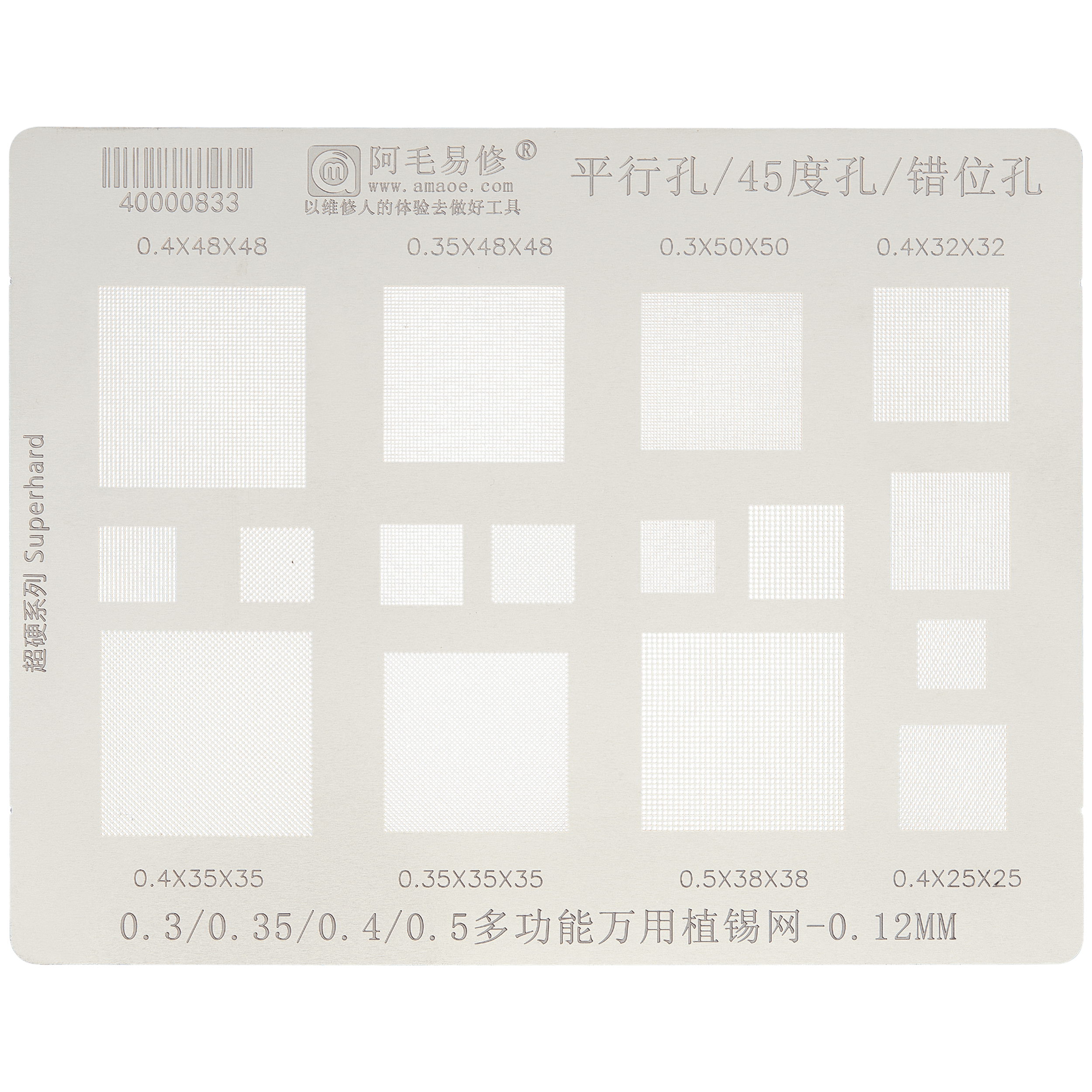 Multi-Function Universal BGA Reballing Stencil 0.3 / 0.35 / 0.4 / 0.5 (0.12MM) (Amaoe)