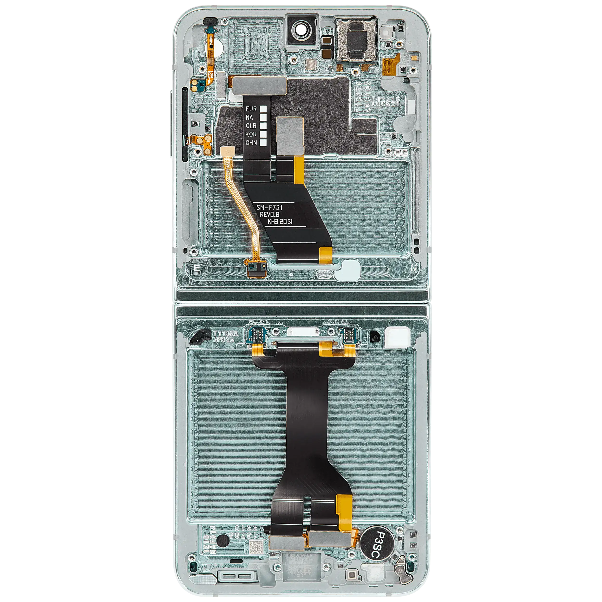 • High quality Inner OLED Assembly with frame replacement for Samsung Galaxy Z Flip 5 5G (US & International Version) (Service Pack) (Mint).