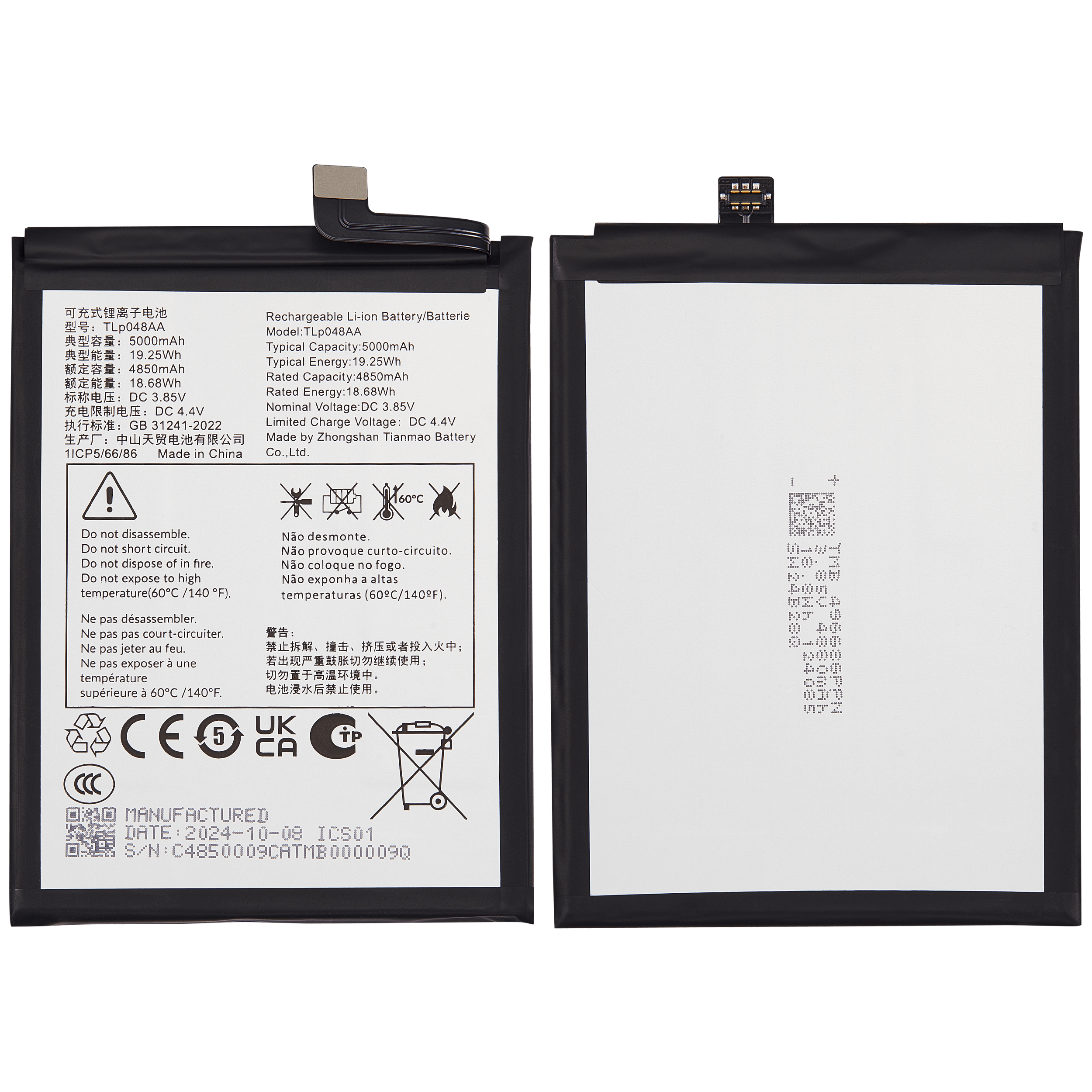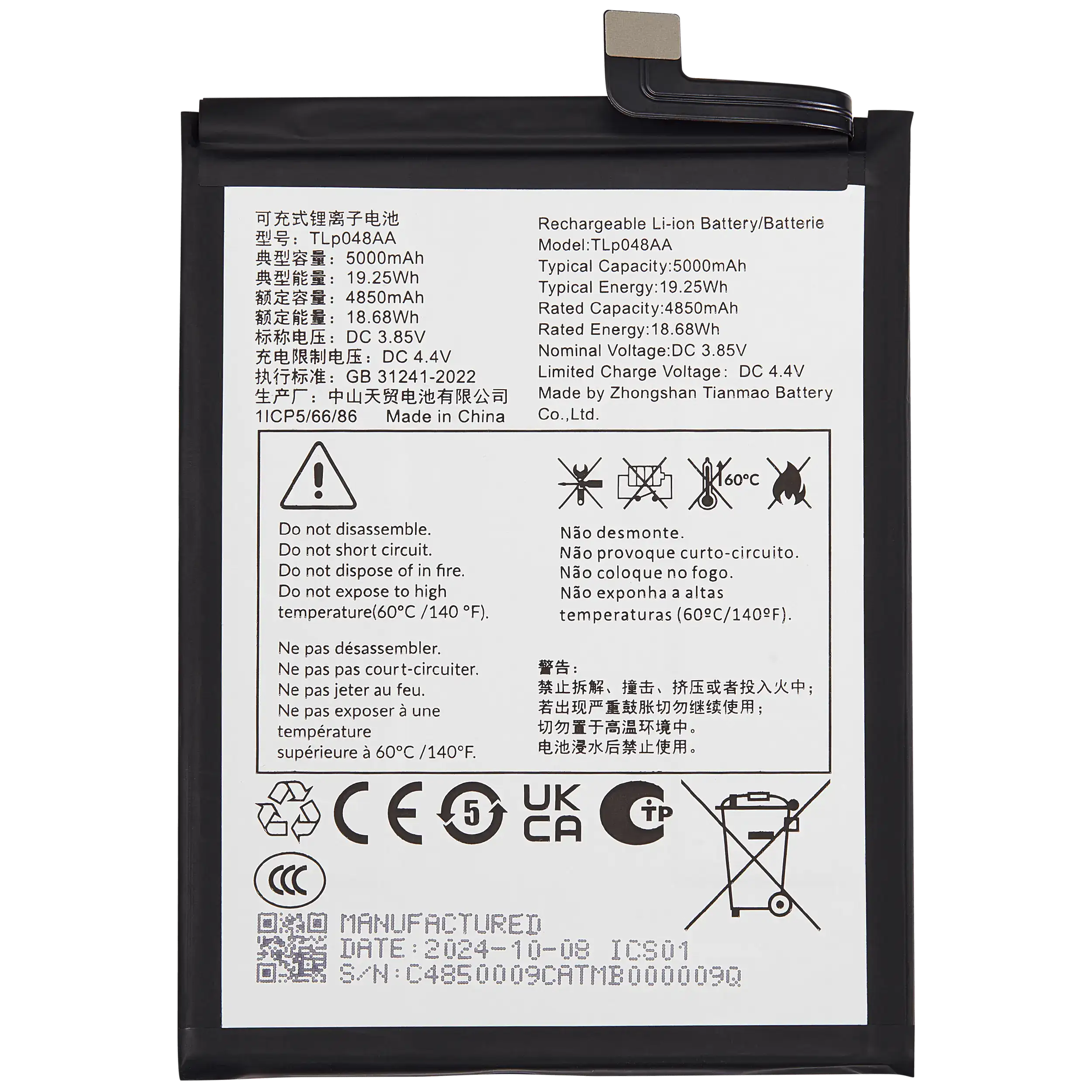 Replacement Battery For TCL 40XE / 40 XL / TCL 50 LE (T510WS) (TLP048D7)