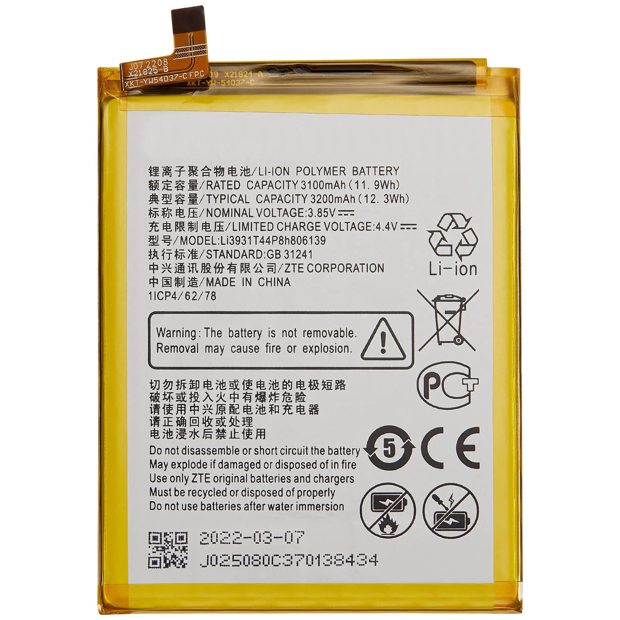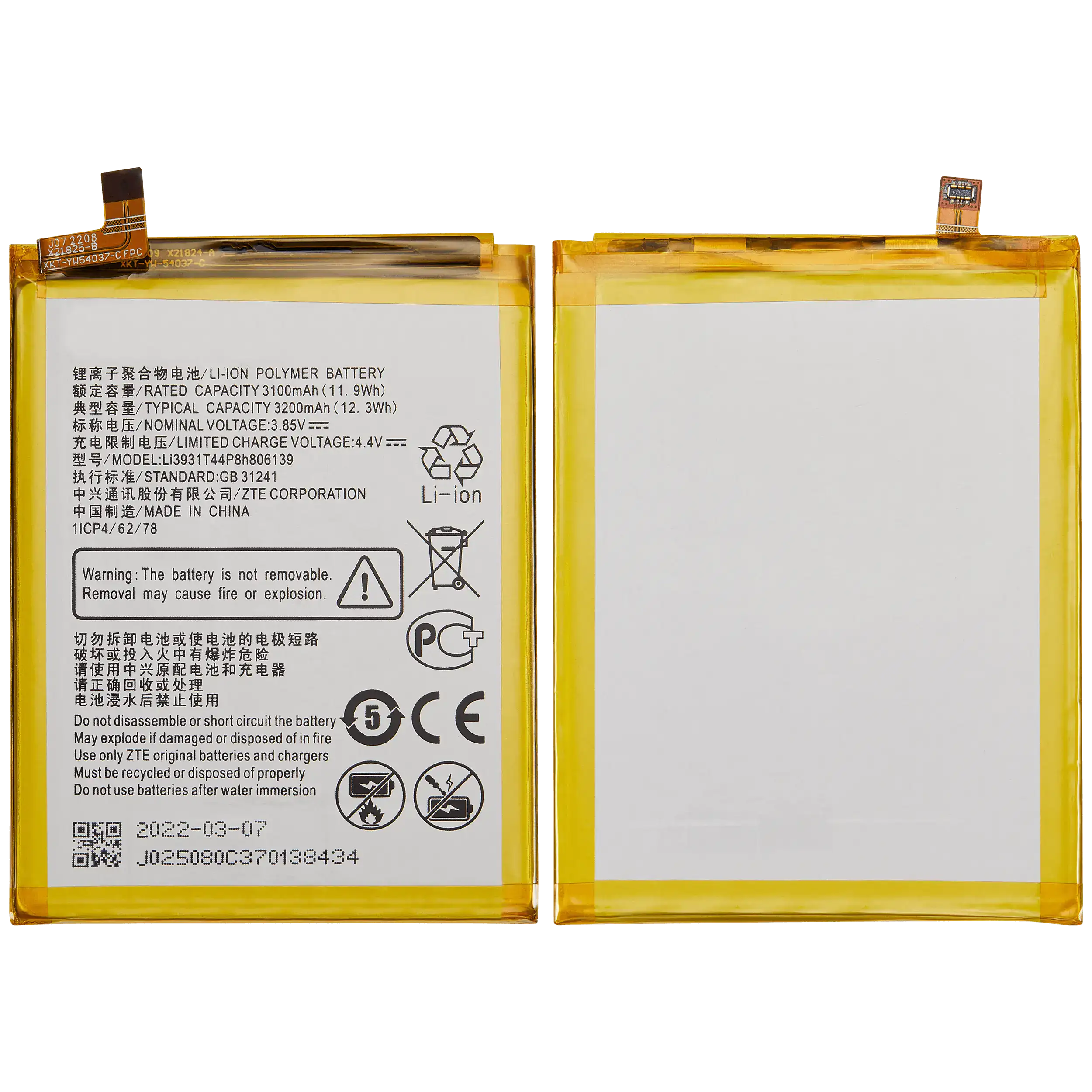 Replacement Battery For ZTE Blade A1 / ZTE Blade V8 Mini / ZTE Axon Mini (Li3928T44P8h475371)