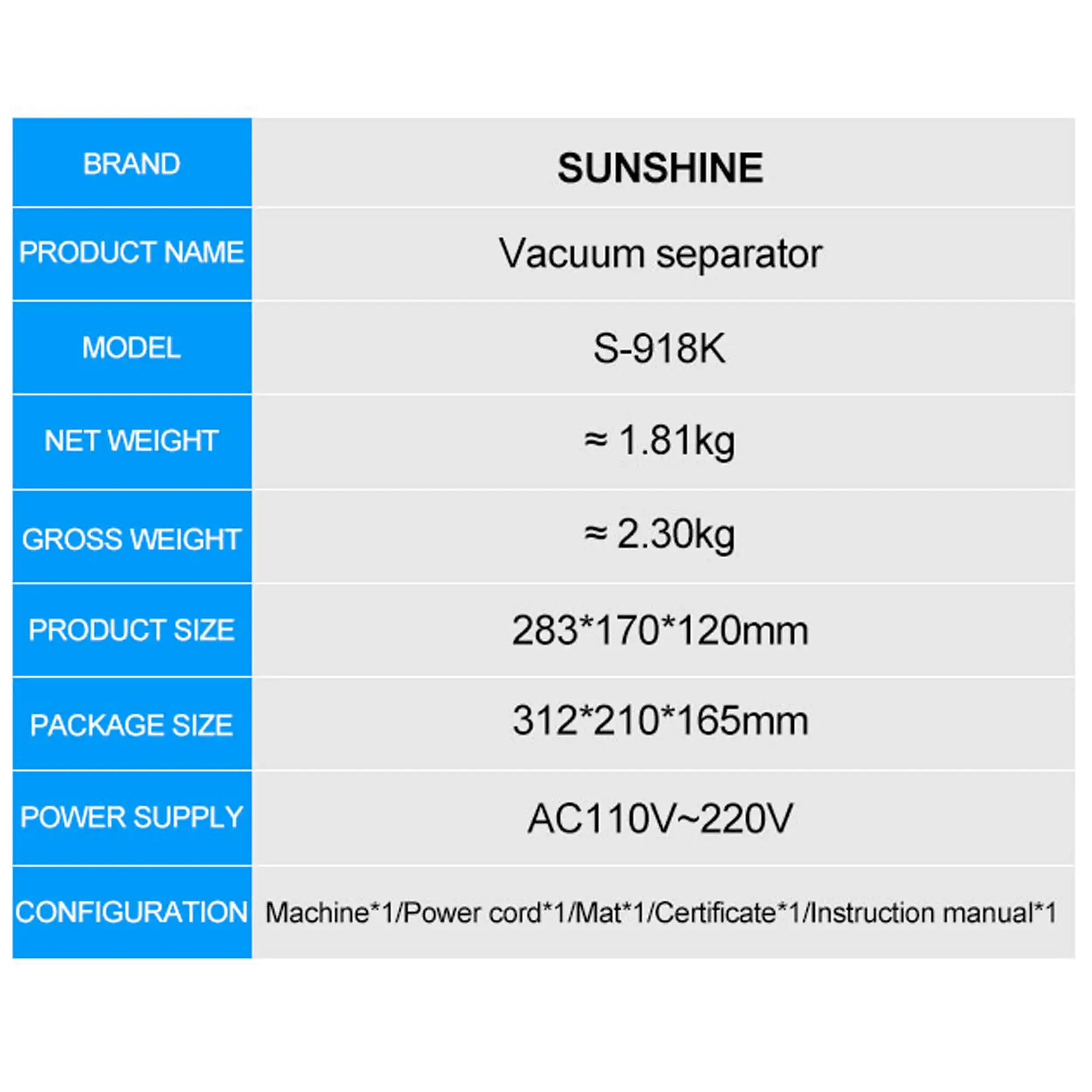Sunshine S-918K 8.5 inch LCD screen separator machine Built-in vacuum pump (110V)