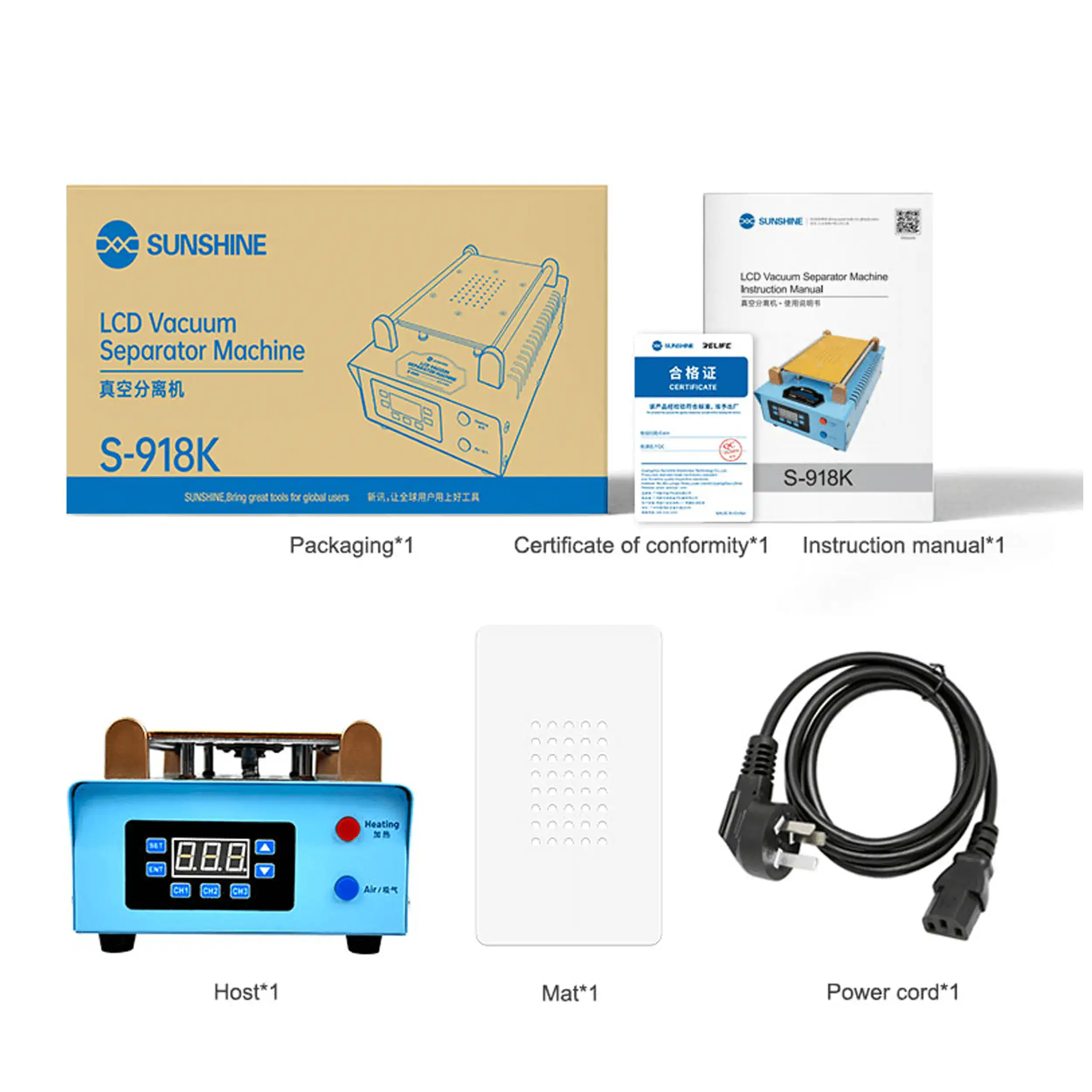 LCD Screen Separator Machine With Built-In Vacuum Pump (S-918K) (Sunshine) (110V / North American)