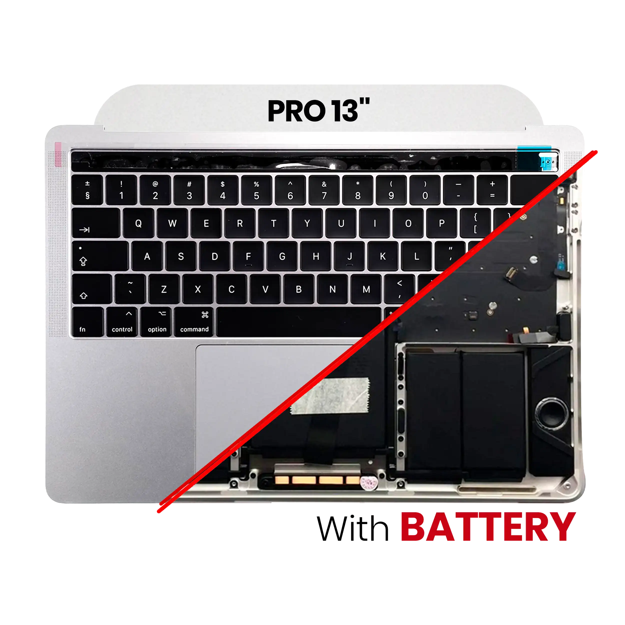 • High quality Top Case Assembly with Battery and Keyboard for MacBook Pro 13" Touch Bar (A1706 / Late 2016) (US Keyboard) (Used OEM Pull: Grade A) (Silver)